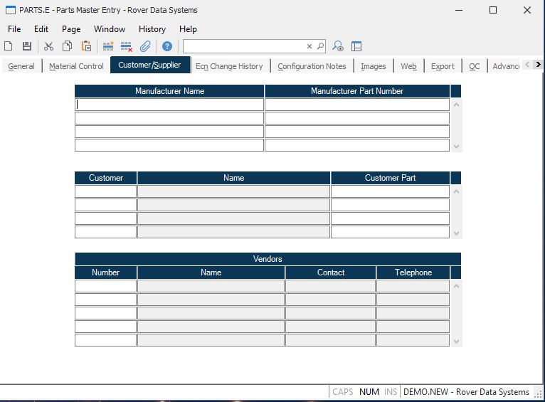 Parts Master Entry (PARTS.E)