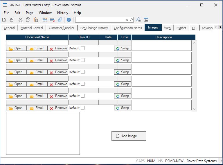 Parts Master Entry (PARTS.E)