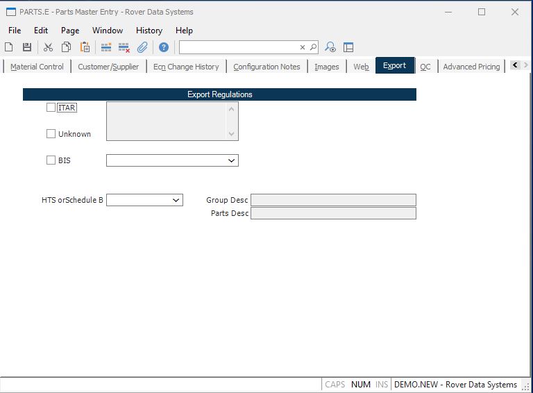 Unknown Check this box if the part's export regulations are unknown. This is the default.
