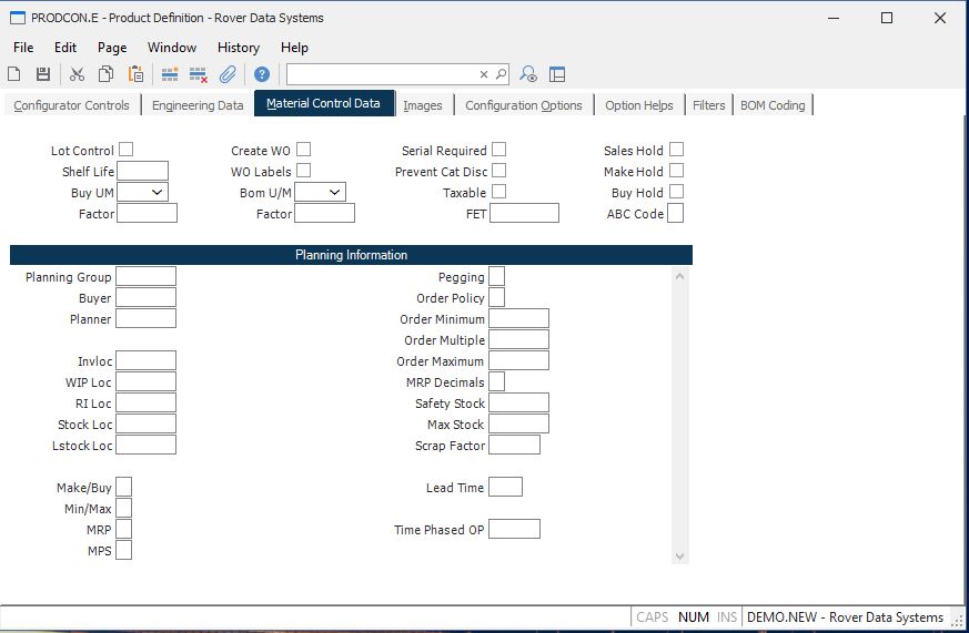 Plan Group Enter the planning group under which the subsequent fields will be controlled. MRP and MPS procedures will access this data, based upon the planning group specified.