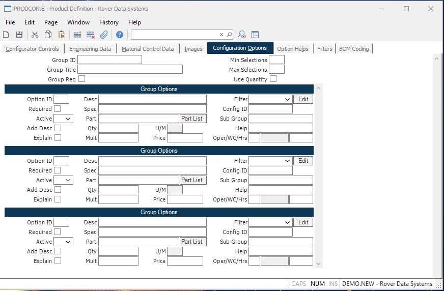 Group Required Check this box if the associated group is a required selection in the configurator regardless of the requirements of its parent option.