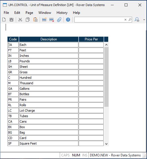 Unit of Measure Definition (UM.CONTROL)