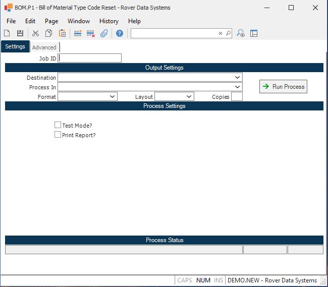Bill of Material Type Code Reset (BOM.P1)