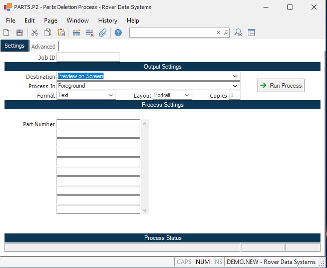 Run Process Click on the button to run the process. This performs the save function which may also be activated by clicking the save button in the tool bar or pressing the F9 key or Ctrl+S.