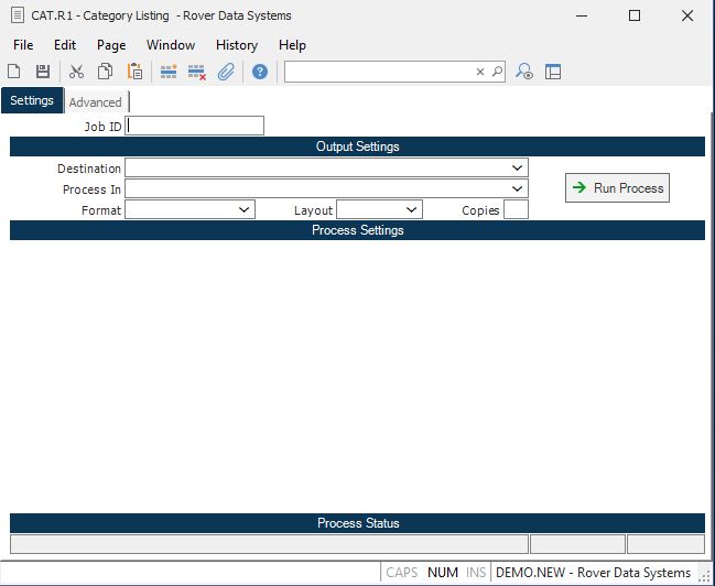 Run Process Click on the button to run the process. This performs the save function which may also be activated by clicking the save button in the tool bar or pressing the F9 key or Ctrl+S.