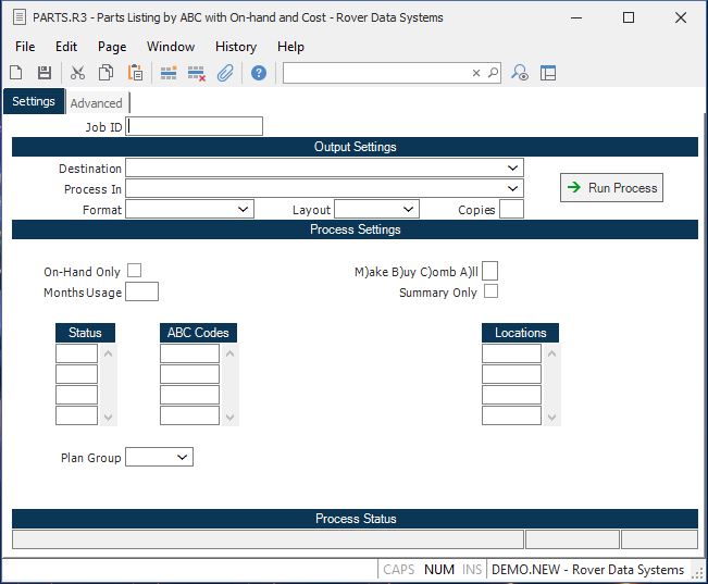 ABC Codes You may limit the listing to include only selected ABC codes. If you want to list all parts, then leave this field blank.