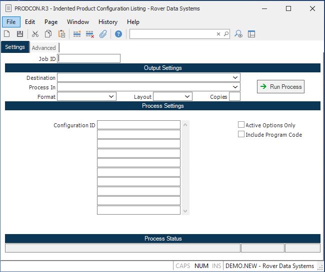 Run Process Click on the button to run the process. This performs the save function which may also be activated by clicking the save button in the tool bar or pressing the F9 key or Ctrl+S.