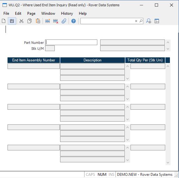 Where Used End Item Inquiry (WU.Q2)