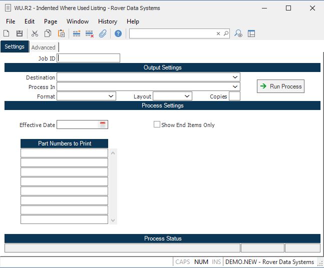 Run Process Click on the button to run the process. This performs the save function which may also be activated by clicking the save button in the tool bar or pressing the F9 key or Ctrl+S.