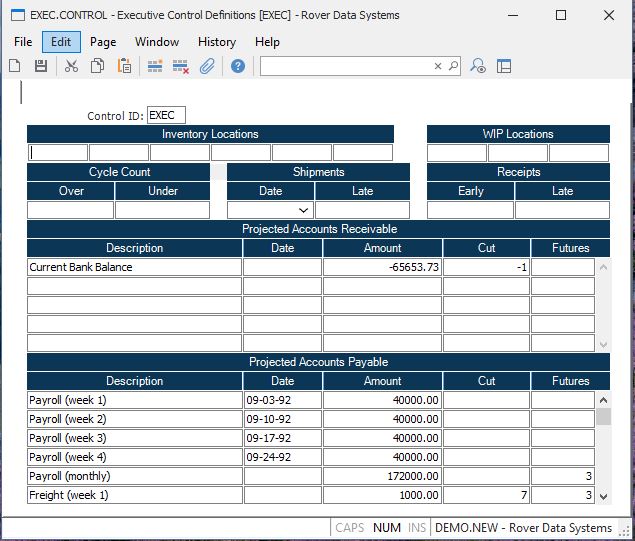 Control ID The record ID for the EXEC.CONTROL record is EXEC. It is loaded automatically by the system, and is the only record accessible by this procedure.