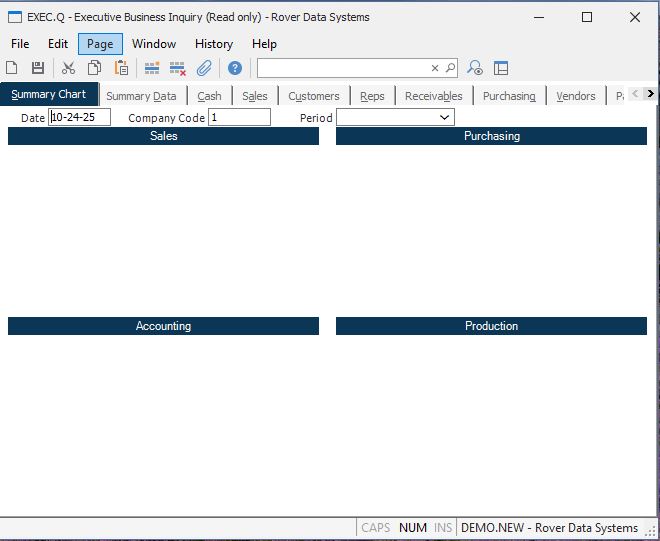 Summary Purchasing Chart Displays the purchase order bookings and receipts for the period specified.