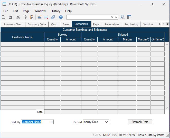 Customer Name The name of the each customer that had bookings or shipments within the period selected.