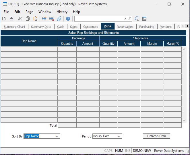 Customer Name The name of the each sales rep that had bookings or shipments within the period selected.