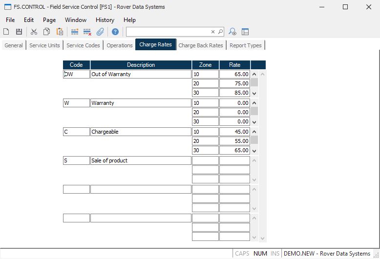 Zone Enter each of the zones to define the rates to be used for the charge code.