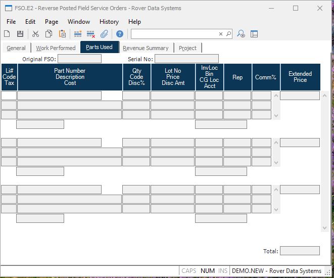 Part No Enter the part numbers used in performing the service. You may leave this field blank and describe the materials used if there is no part number used to define the item, however there will be no cost of sales generated for the item or inventory reduction.