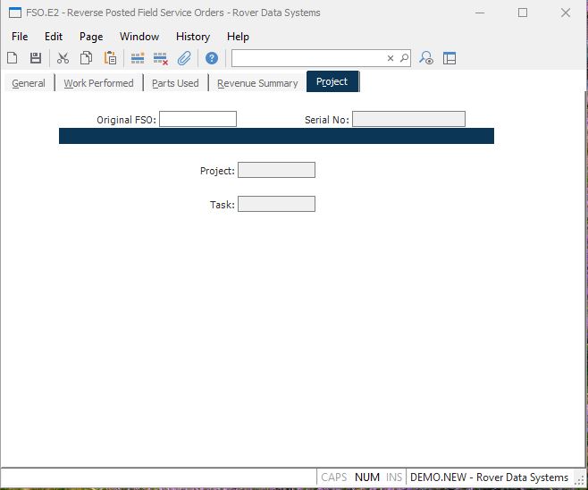 Project Id If this field service order is for a project, enter the project number. This will cause the costs and revenue associated with this order to be added into the project costs and revenue.