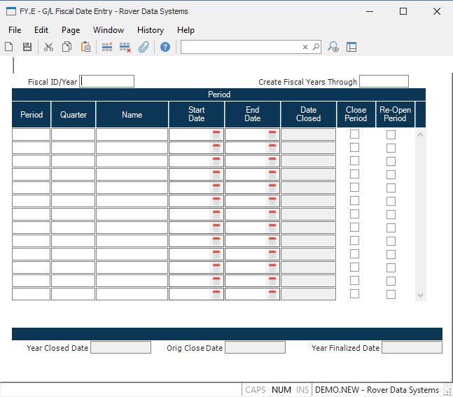 Year closed This field contains the date on which the year end closing procedure, FY.P1 , was run. Journal entries can still be created via GLTRANS.E once this date is set, but not after the final closed date. The posting program will automatically roll amounts posted to Income Statement accounts into the Retained Earnings account after the close. This date is displayed for reference only and cannot be changed.