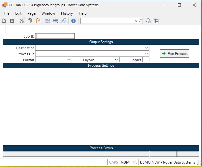 Run Process Click on the button to run the process. This performs the save function which may also be activated by clicking the save button in the tool bar or pressing the F9 key or Ctrl+S.