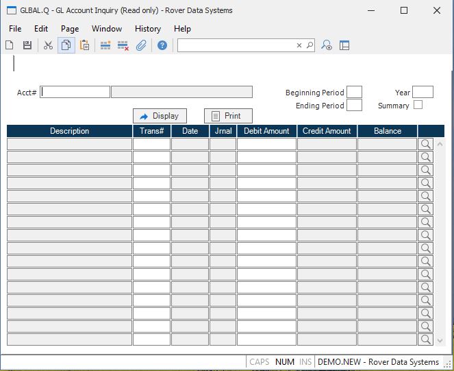Summary Check this box to display a summary version of the data. In this case, only one line per fiscal period will be displayed, showing the period end balances.