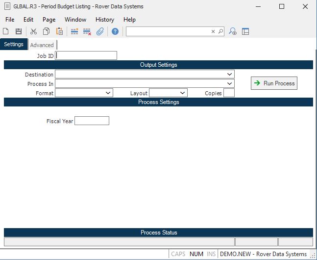 Fiscal.year Enter the fiscal year for which you wish to list budgets. This field will default to the current reporting year in the GL.CONTROL record.