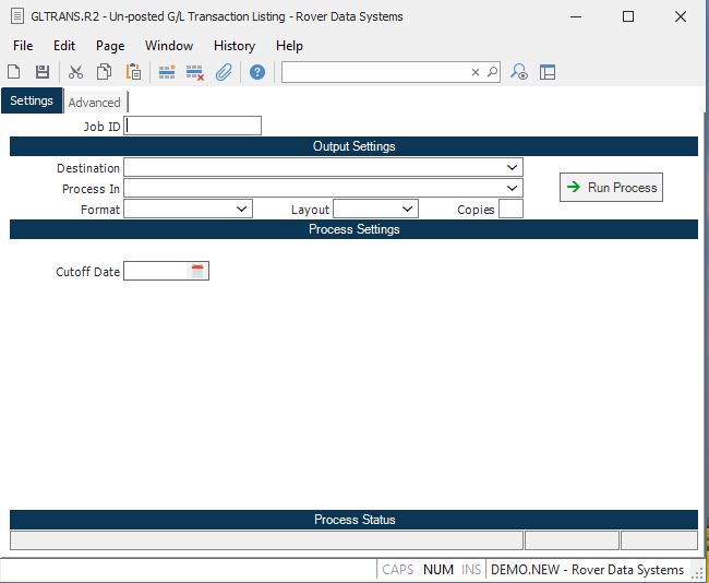 Cutoff Date If you only wish to view unposted transaction through a given date, enter that date here. If this field is left blank, all unposted journal entries will be included.