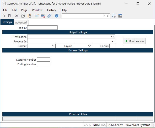 # List of G/L Transactions for a Number Range (GLTRANS.R4)