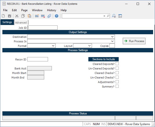 Bank Account This field contains the bank account number from the Recon ID entered and is for reference only.