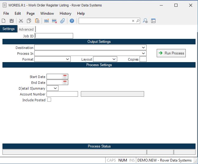 C$X38 If you wish to show each line of detail from the WOREG file, enter 'D'. If you wish to summarize the detail into one line per account, enter 'S'. If you leave this field null, detail is assumed.