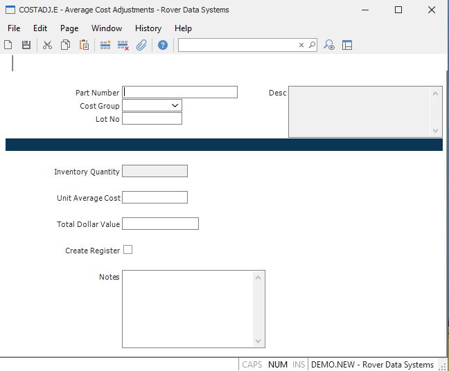 Part Number Enter the number of the part whose average cost is to be changed.