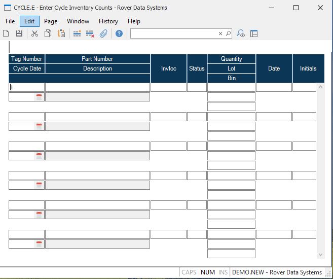 Enter Cycle Inventory Counts (CYCLE.E)