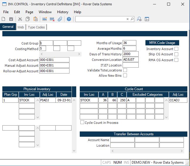 Inventory Control Definitions (INV.CONTROL)