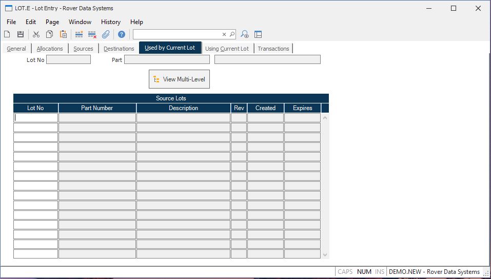 Lot Used Contains the lot numbers which were consumed in the process of creating the current lot. These may be lots with the same part number as the current lot, usually created by individual inventory transactions, or lots with different part numbers as in when a lot is created by a work order completion.