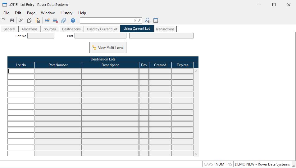 View Multi-Level Click this button to display the lot destination information in a data grid that allows you to drill down through the higher levels.