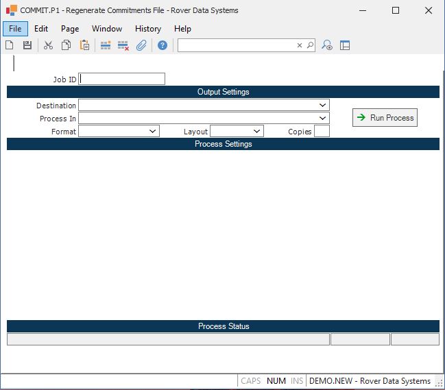 Run Process Click on the button to run the process. This performs the save function which may also be activated by clicking the save button in the tool bar or pressing the F9 key or Ctrl+S.