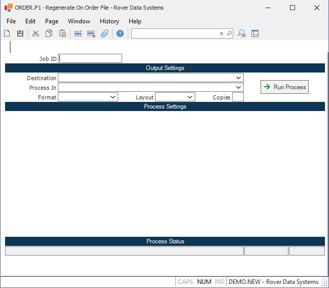 Run Process Click on the button to run the process. This performs the save function which may also be activated by clicking the save button in the tool bar or pressing the F9 key or Ctrl+S.