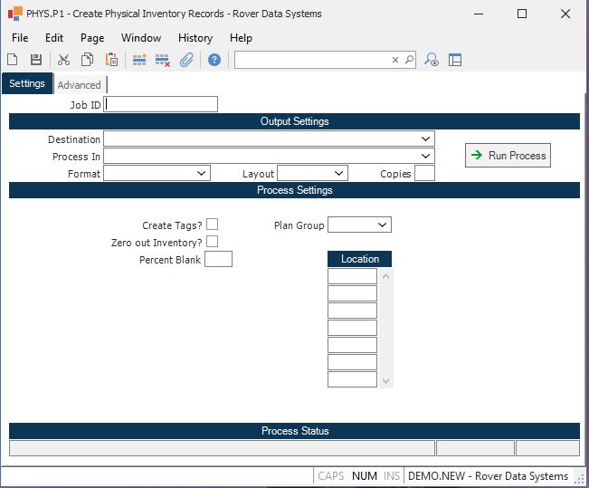 Inventory Locations The inventory locations which will be included in the physical inventory. These are automatically loaded from the INV Control record and cannot be changed in this procedure.