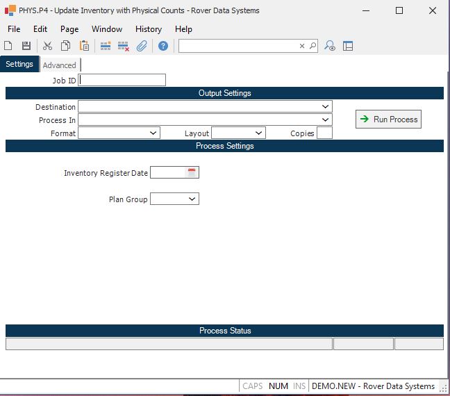 Inventory Register Date Enter the date for which INVREG register records will be recorded. This will affect the transactions feeding the General Ledger.