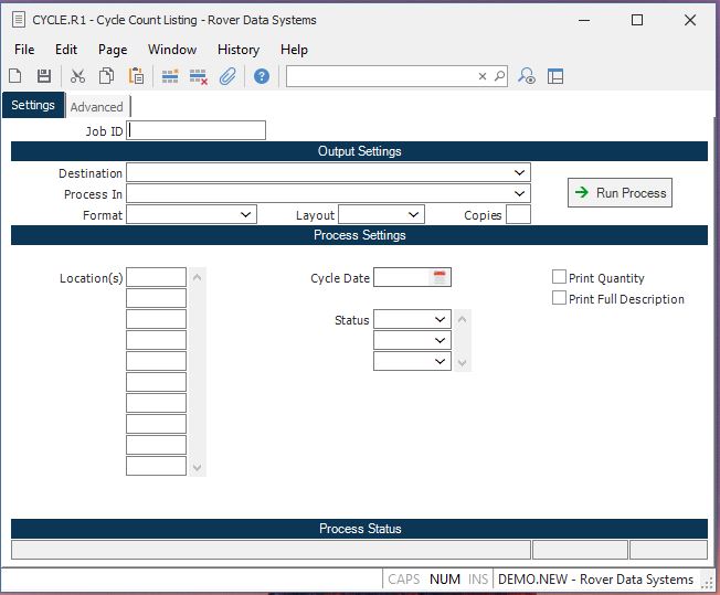 Location(s) Enter the inventory location to be used in the creation of the cycle count listing. The inventory balances for this location will be printed for each part. If you wish to print a cycle count sheet for all eligible inventory locations, leave this field null.