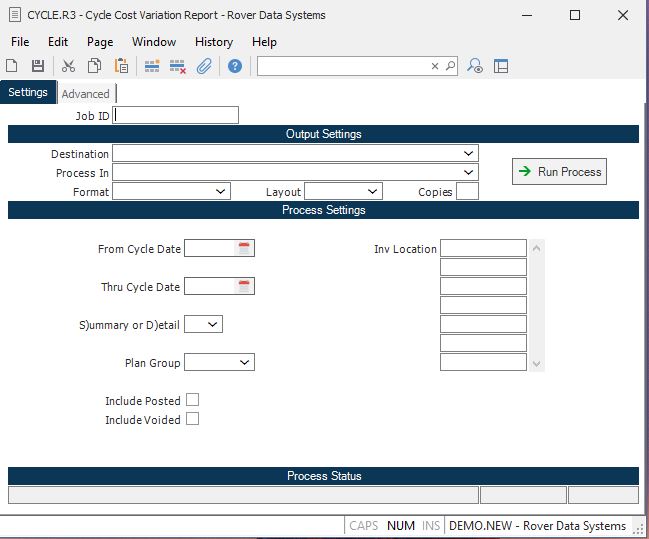 Run Process Click on the button to run the process. This performs the save function which may also be activated by clicking the save button in the tool bar or pressing the F9 key or Ctrl+S.