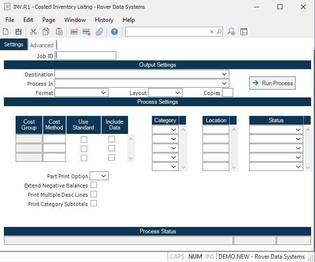 Location Enter the inventory locations to be included in the report. If no locations are specified then all locations are used, unless the location belongs to a cost group that is not being included.