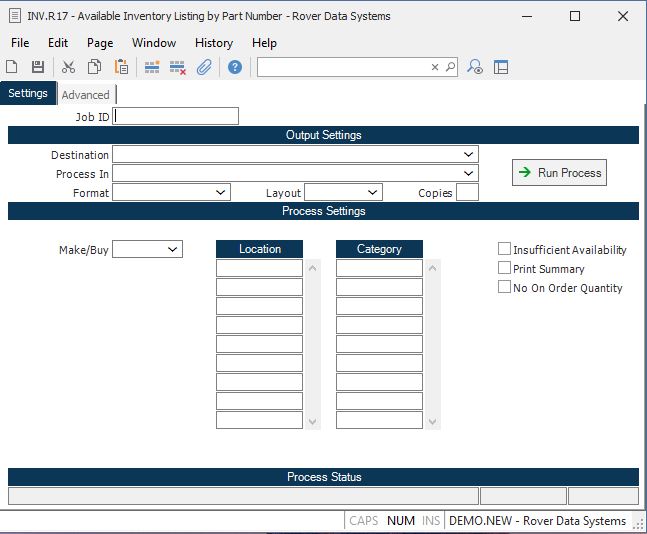 Location Enter the inventory locations you wish to appear in this report. The available inventory will only be calculated for these locations. If no entry is made in this field, all locations will be selected.