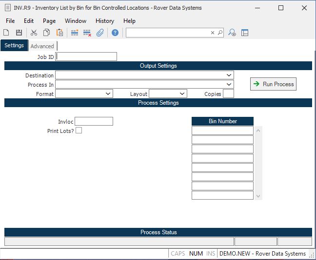 # Inventory List by Bin for Bin Controlled Locations (INV.R9)
