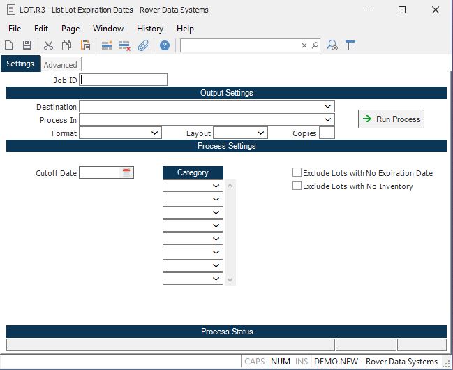 Cutoff Date This field may be used to list only lot number that have an expiration on or before the date entered. Leave this field empty to list all lots, regardless of expiration date.