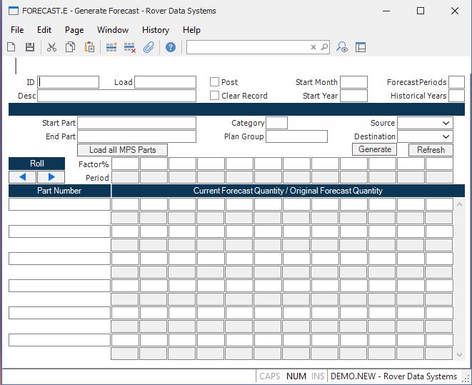 Load If you wish to load in the data from an existing forecast record, enter in the forecast id in this field.