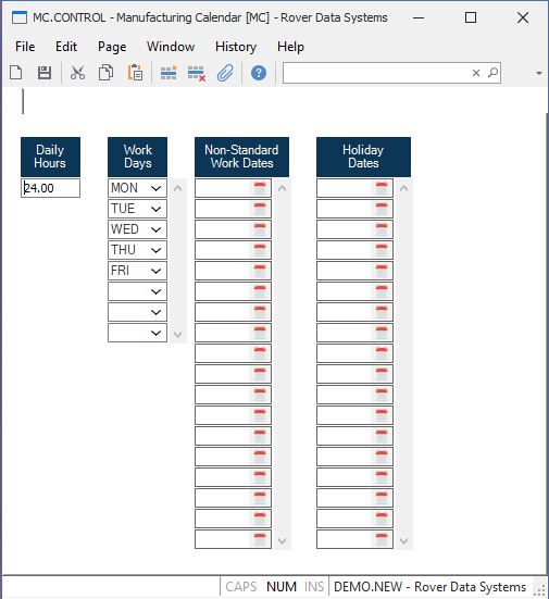 Non-Standard Work Dates This field defines all of the days for which work has been planned, but are normally non-work days. You should enter the date for each non-work day out to or beyond the planning horizon. Dates in the past may be removed at any time since they no longer affect future planning.