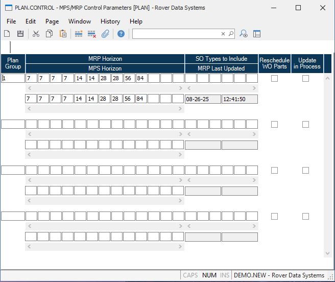 MPS/MRP Control Parameters (PLAN.CONTROL)