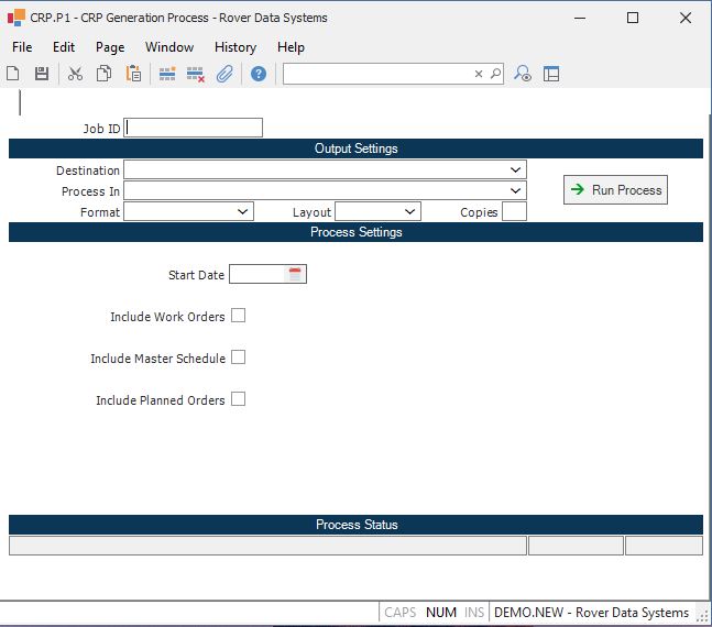 Start Date Enter the date to be used as the start date for the first period in the CRP horizon. The period sizes defined in the CRP.CONTROL record are offset from this date to determine the period start and end dates for the horizontal report.