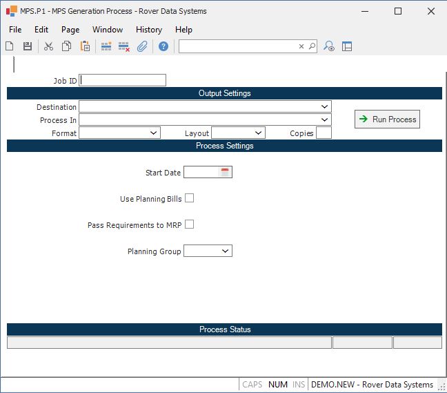Planning Group Enter the planning group for which you wish to process MPS. This field will default if there is only one planning group found in PLAN.CONTROL .
