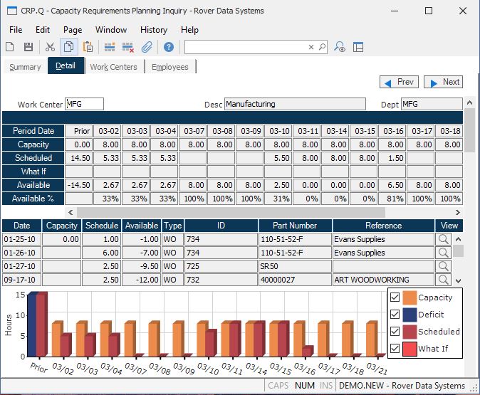 Detail Chart Displays a chart indicating the capacity required for each period compared with what is available.
