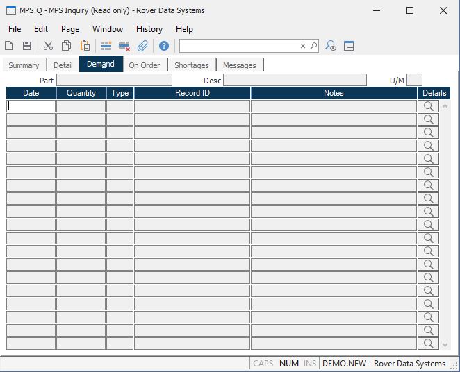 Pegging ID Shows the record ID or part number of the parent item which is driving the demand for the part.